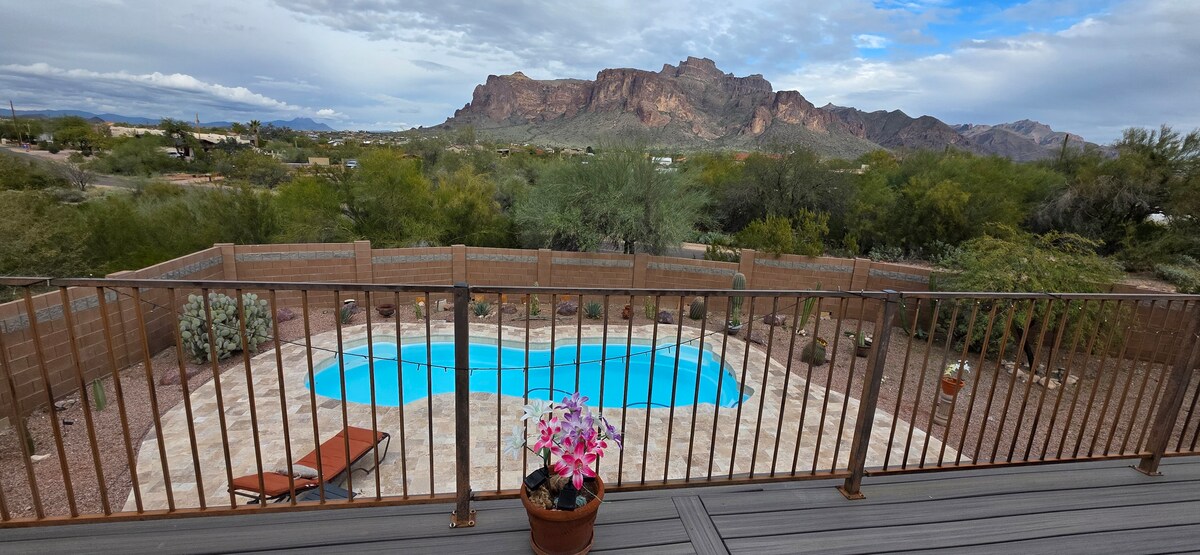 欢迎来到位于亚利桑那州沙漠中的绿洲度假胜地。 迷人的迷信山景,是徒步旅行、划船或参加附近婚礼的理想地点。 您可以独享这栋位于 1.25 英亩(5066 平方米)土地上的整套房屋,包括 3 间卧室和 2 个卫生间,以及带私人泳池(可应要求加热)。 这栋房子可供 8 人舒适入住(1 张 1.8 米宽双人床和 3 张 1.5 米宽双人床),每个房间均配备智能电视和高速无线网络。 这座家外之家拥有迷人的景观和家一般的舒适环境,是放松身心的理想场所!