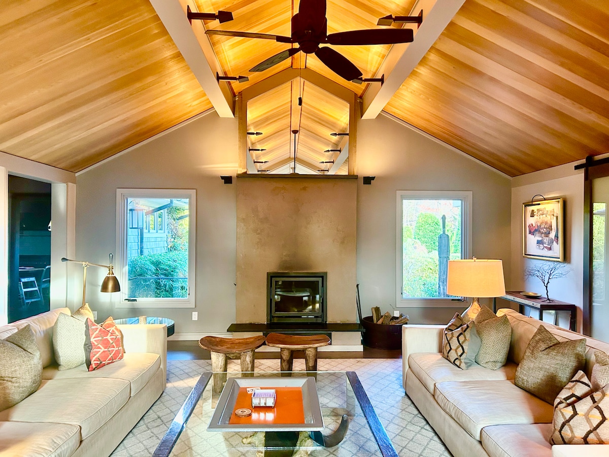 豪华室内设计师设计的全新现代室内外家具。这座温馨的海滩小屋经过全面翻修,您可以在宽敞的桃花心木甲板上欣赏美妙的水景,距离美丽的长滩仅几步之遥,距离萨格港的主街仅几英里。房源采用开放式布局,配备舒适的燃气壁炉、配备不锈钢电器和Viking系列的更新厨房。三间卧室(一间带私人办公室)和一间户外淋浴间。