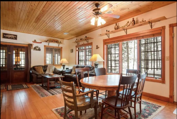 这是一套双卧室双卫生间的房源,环境宁静,靠近许多当地便利设施。 一间卧室配有一张加大双人床,另一间配有一张标准双人床,客厅配有一张标准双人床和一张双人沙发床。 厨房经过全面改造。面向树林的大露台,配有烤架和火坑。 位于Bearskin步道上,可步行、骑自行车和骑雪地摩托车! 靠近许多湖泊和景点。 从高速公路可轻松抵达,但位于安静的单出口胡同路上。 免费无线网络/智能电视。准备好留下美好的回忆吧!