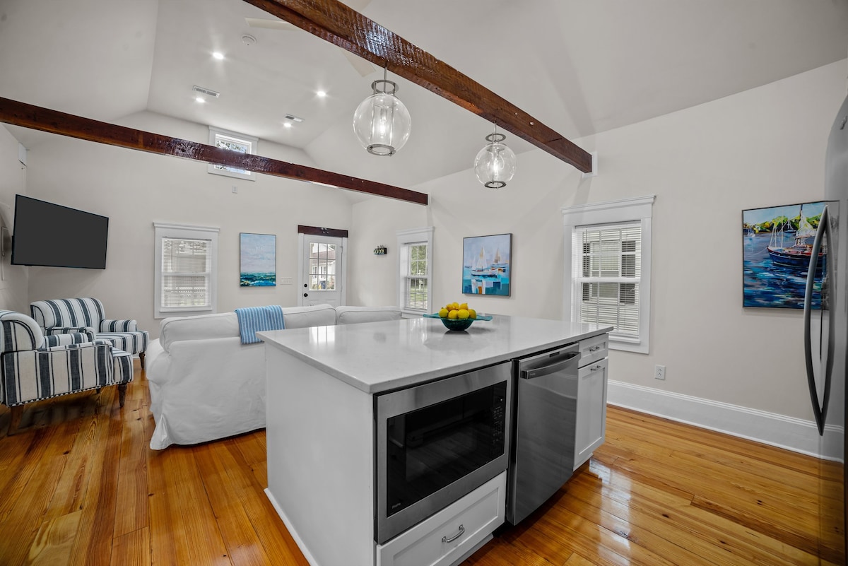 欢迎来到我们位于市中心的时尚公寓! 此房源设有2张豪华加大双人床、2间全功能卫生间、设备齐全的厨房和6人用餐区。 在家庭办公室舒适地工作,在客厅放松身心,享受位于市中心的便利。 非常适合旅行护士和医疗专业人士,靠近ECU Health (华盛顿或格林维尔)。 这套公寓距离海滨仅一个街区。