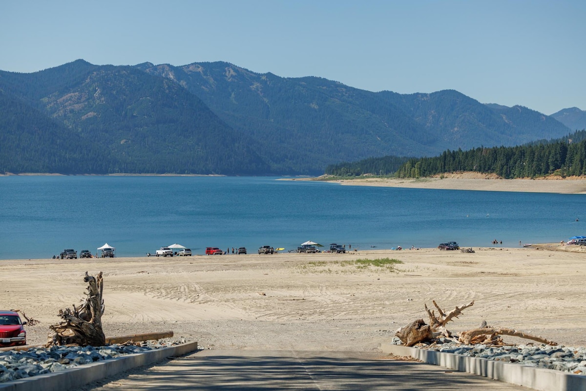 在这处宁静房源中,与全家人尽情放松。景观优美。从车道上即可乘坐雪地摩托车。夏季活动可前往湖泊。距离车道1英里处有受保护的雪鞋步道和跨县公路。徒步旅行。距离斯诺夸尔米(Snoqualmie)山顶滑雪和非常棒的餐厅以及市场8英里。距离克莱埃勒姆(CleElum)和桑卡迪亚度假村(Suncadia Resort)30分钟车程。
