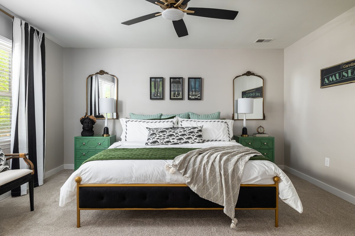 欢迎来到您舒适、新装修(2024年7月)的乡村现代农舍! 坐落在一个安静迷人的街区,距离顶级High Point景点仅几分钟路程-距离HPU和家具市场10分钟路程,距离N. Main St. 4分钟路程,距离Oak Hollow Lake & Golf 9分钟路程。 享受全新装修的厨房,配备花岗岩台面、瓷砖后挡板、新橱柜和电器。 在北卡罗来纳州High Point市中心的这颗宁静宝石中放松身心,感受家的温馨舒适!