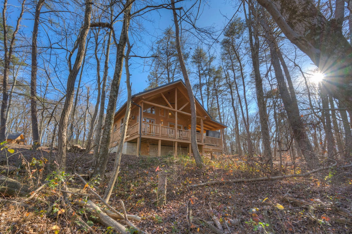 霍金山( Hocking Hills )景点附近的僻静小木屋。 从我们巨大的窗户墙上欣赏美丽的景色。 大量的桌游和DVD。 风景优美的木头和峡谷。 在户外吊床或篝火旁放松身心。 从小木屋步行几分钟即可抵达储备充足的社区湖泊,可供游泳、捕捞和释放钓鱼和非机动船! 非常适合在壁炉旁度过舒适的夜晚,也可以作为探索的家庭基地。 在恶劣天气条件(冰或雪)的情况下,入口处需要四轮驱动车的大砾石山。