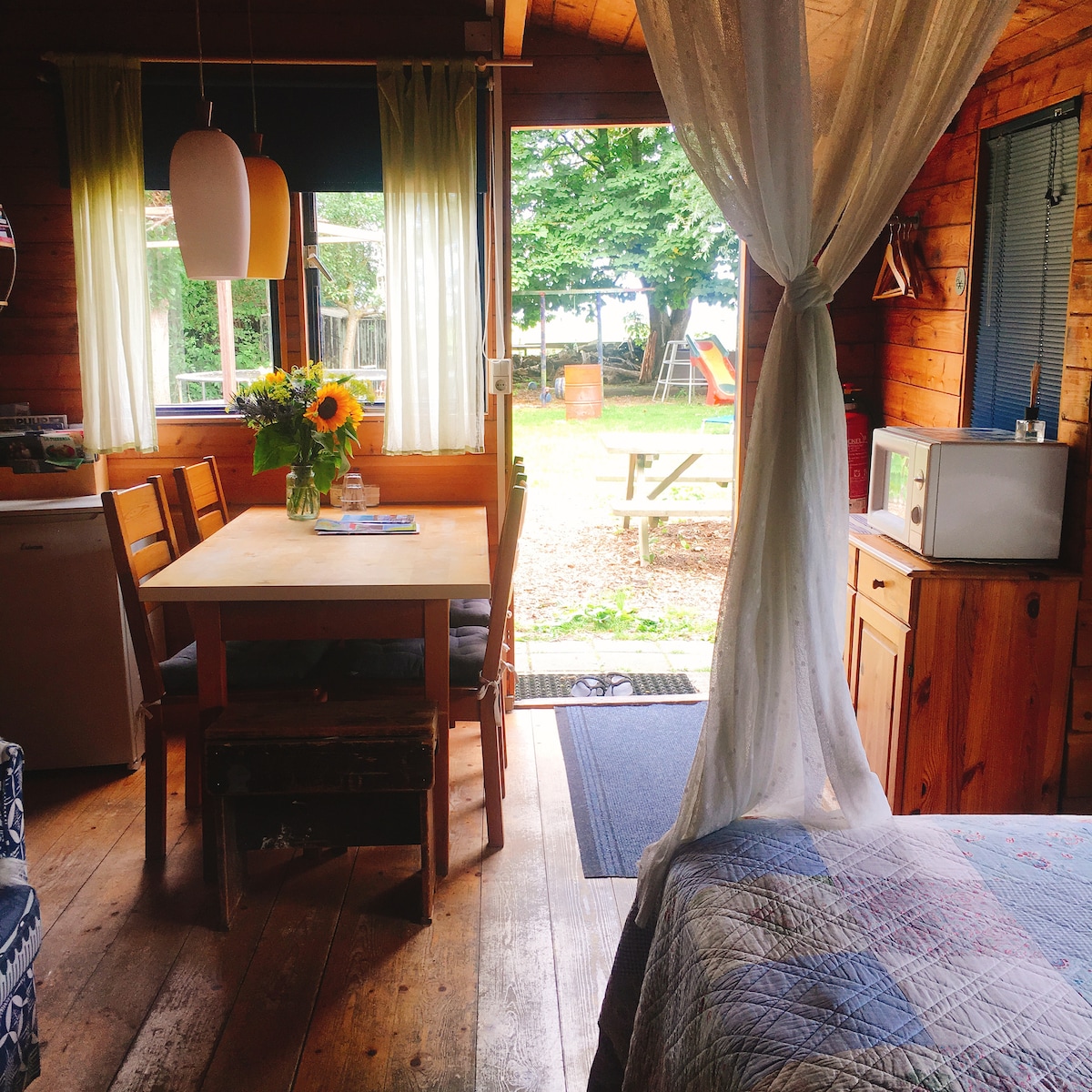 一栋木屋,让您感觉宾至如归。 距离Zaanse Schans仅10分钟车程,前往阿姆斯特丹的公共交通工具安排得很好。 房子前可以免费停车。 带烧烤架的私人露台。 价格为2人。 旅游税包含价格,早餐不含。 每人12欧元,我将为您提供一顿丰盛的早餐。 您可以免费使用自行车!