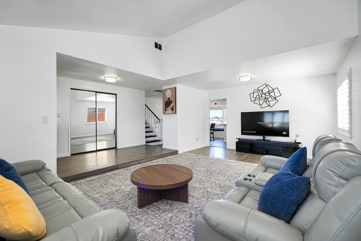 "**在我们的家庭友好型度假屋中重新建立联系并放松身心!** 您是否渴望与家人或亲人共度美好时光?我们的房源设计精美,旨在为您营造难忘的时刻和无尽的乐趣,是您的理想之选。欢迎来到您的完美度假胜地! 这是一个2单元的房源,一栋主屋和一间改建的车库单间公寓。单间公寓设有独立入口,不能进入房源。 您可以租下两套房源,独享整个房源。房子可独享后院。