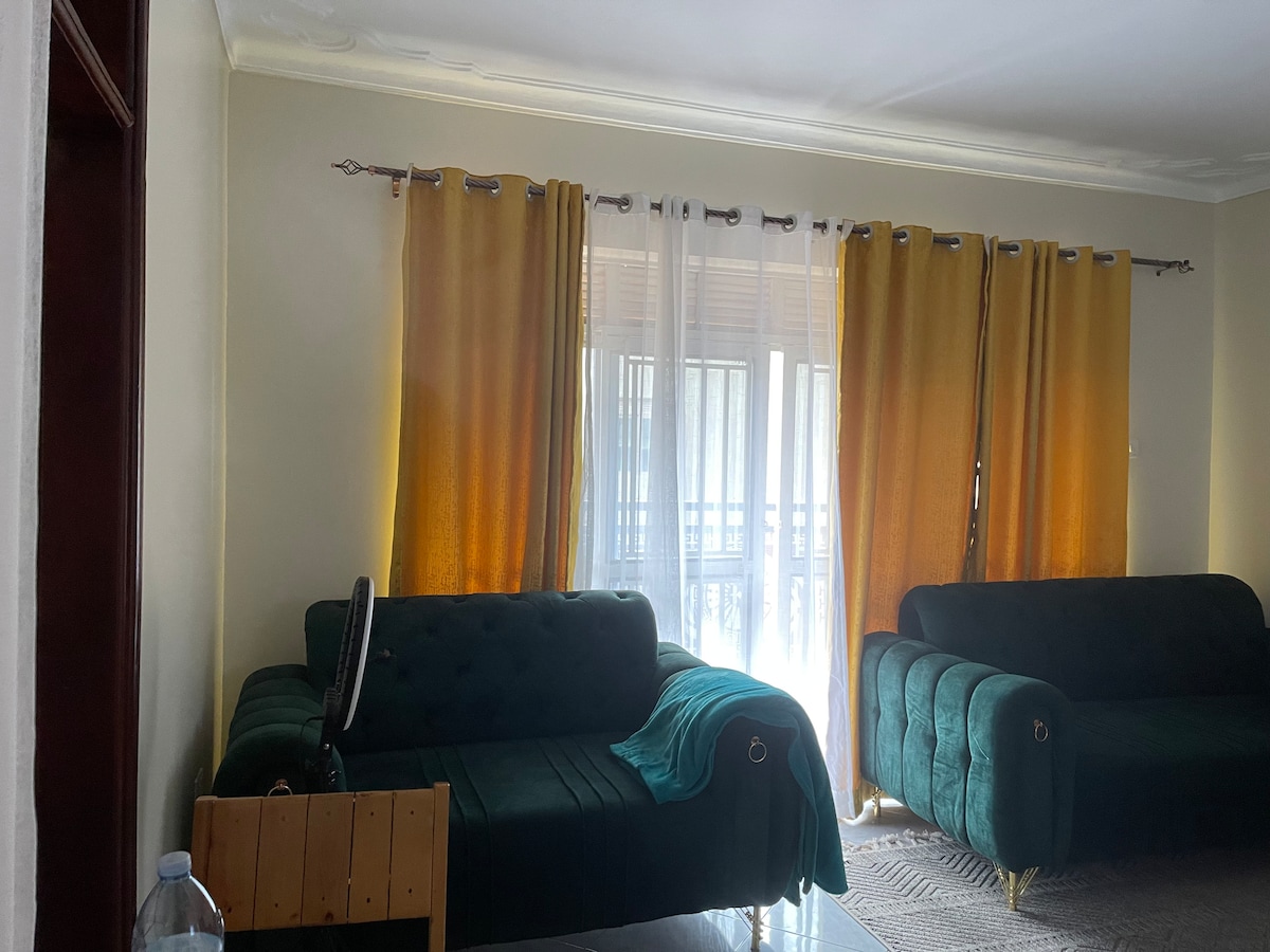 一套公寓,配备一间卧室(一张加大双人床)、厨房和卫生间。 位于坎布加镇。 靠近伊丽莎白女王国家公园。 这间客房可以替代Kigezi Cottages。 公寓位于医疗综合大楼内(设有门禁、摄像头和夜间看守)。 联系人:John Kanyonyozi。 请致电协调抵达等事宜。