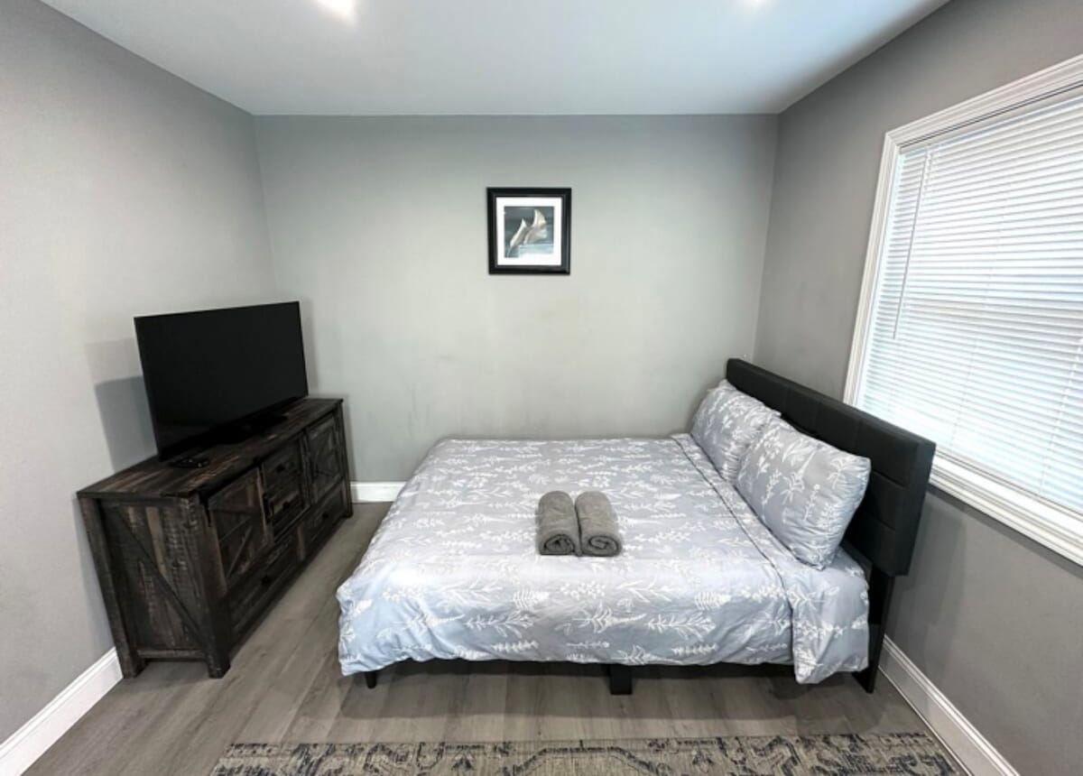 船长小屋位于鲨鱼河沿岸的海滨公园对面的房源后方,地理位置优越。 街对面就有桨板/皮划艇租赁、钓鱼码头、包船、迷你高尔夫球场和贝尔马最新的海滨餐厅。院子里可欣赏到海滨美景,这里有着海岸最美的日落之一!包括2人皮划艇、2辆自行车和2个海滩徽章!非常适合情侣或一群朋友入住。距离海洋1英里。乘坐优步、自行车或火车可前往阿斯伯里公园。 此外,请注意,此房源内有两栋房子,均为出租房源。隐私不是问题...两栋房子、地址、院子和停车场都是分开的。不过,车道入口是共用的。此房源为后屋。 Captain's Cottage位于贝尔马(Belmar)非常独特的地理位置。在过去几年里,贝尔马码头(Belmar Marina)区域因为公园空间、海滨人行道、钓鱼码头以及沿着鲨鱼河(Shark River)开设的新酒吧和餐厅而备受青睐。第9大道码头(9th Ave Pier)和Marina Grille一直是大热,您可以在那里享用美食和美酒,欣赏美丽的日落。该地区还提供包船捕鱼、迷你高尔夫球场、帆伞、皮划艇/立式桨板租赁。房源仍然靠近主街,距离大海约一英里。房源对面的鲨鱼河沿岸还有一个免费海滩。乘坐优步、自行车或火车前往阿斯伯里公园(Asbury Park)也很方便。 停车: 指定空间可容纳两辆车,邻近的街道(K街或L街)可免费提供额外停车位。 贝尔马火车站和贝尔马主街仅几步之遥。 距离大海一英里,沿着鲨鱼河对面的街道上还有一个免费的公共海滩。 乘坐优步、自行车或火车前往阿斯伯里公园(Asbury Park)非常方便。 请注意共用车道入口和停车位分配。