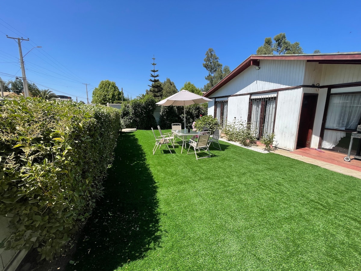 我们的小屋位于Quisco Norte,非常适合远离喧嚣,享受海岸。 步行7分钟即可抵达海滩,距离超市、商业、巴士总站和森林仅几步之遥。 房源配备了您安静入住所需的一切设施,包括厨房、炉灶、电视、露台、室内停车场和空间,可供家庭或情侣放松身心,非常适合周末度假。