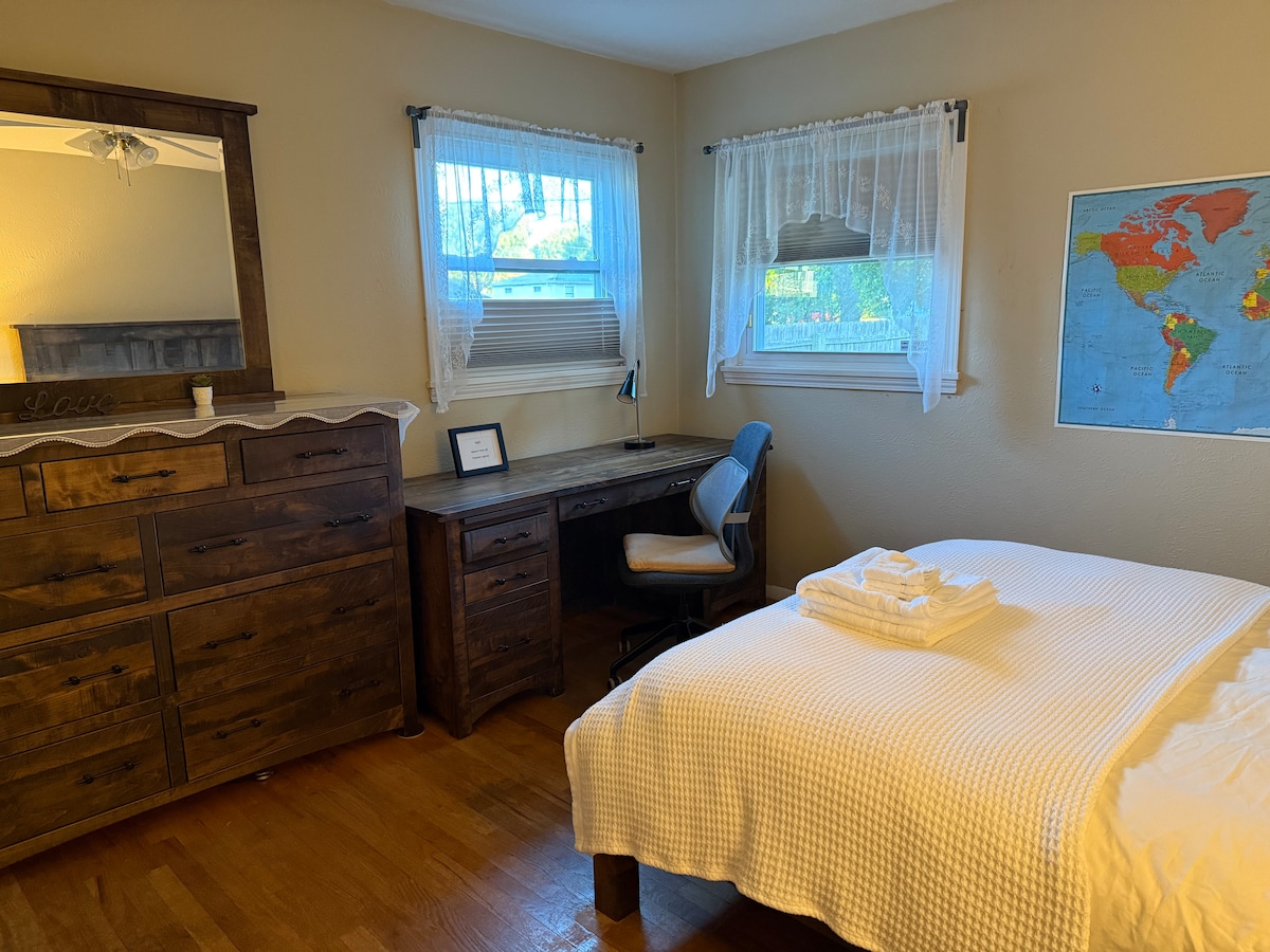 入住我们的单间公寓套房,带独立外门入口。 房东住在房子的其他地方。 在后院,您可以钓鱼、划皮划艇/独木舟、划桨板、享受篝火、烧烤,并在河边放松身心。 配备一张加大双人床、一张沙发床和一台49英寸电视。 宽敞的办公桌、快速无线网络和咖啡,适合远程办公。 衣柜设有迷你食品准备区,配备迷你冰箱和微波炉,后院有烧烤设施。 距离巴黎圣母院仅15分钟车程。