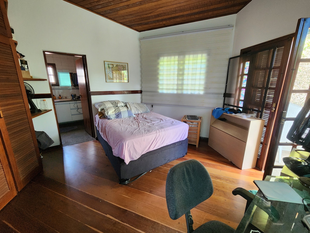 放松身心, Blue House是朋友共用的空间。 这栋房子的居民是研究人员、教师和学生。 所有可用的卧室均设有独立卫生间和独立学习空间。 这栋房子有一个宽敞的起居室,环境多样(壁炉、图书馆和电子电视) ,餐厅,厨房,洗衣房,游泳池,阳台,车库,有草药和树木的植物。 距离基本的Unicamp自行车10分钟步行路程,毗邻生态公园。