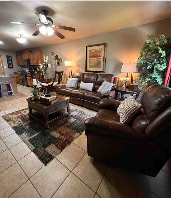 Jimmie 's House是一个舒适的三卧室绿洲。 在这个宁静、时尚的空间里放松身心放松身心。 这个新装修的房间是专为您量身打造。 在适合家庭入住的环境中,舒适宽敞。 可供5人舒适入住,另外还有一人躺在婴儿床上,可容纳150磅以下的人。 愿意为额外的人准备一张婴儿床,不收取额外费用。 免费咖啡,配有功能齐全的厨房,配有锅和平底锅。 提供餐具。使用洗衣机和干衣机。