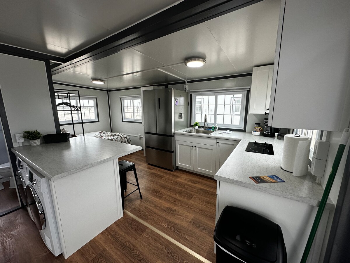 全新小房子,紧邻338环路,位于一个安静的小型房车公园。如果您想找一个舒适的住处,这里就是您的理想之选。全新家具和便利设施。 欢迎长期租住! 欢迎提问!