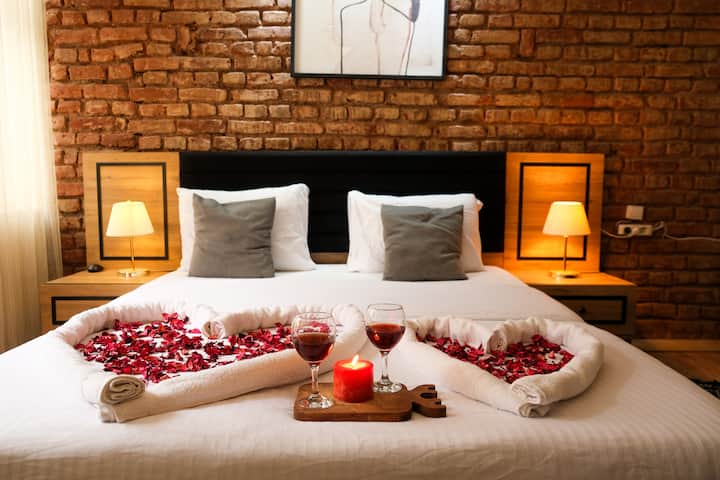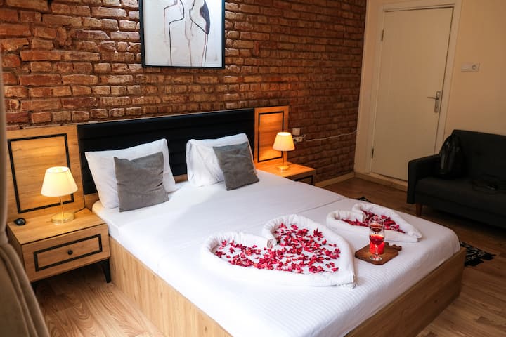 2-) 位于塔克西姆的装饰性4人公寓(特大房)
