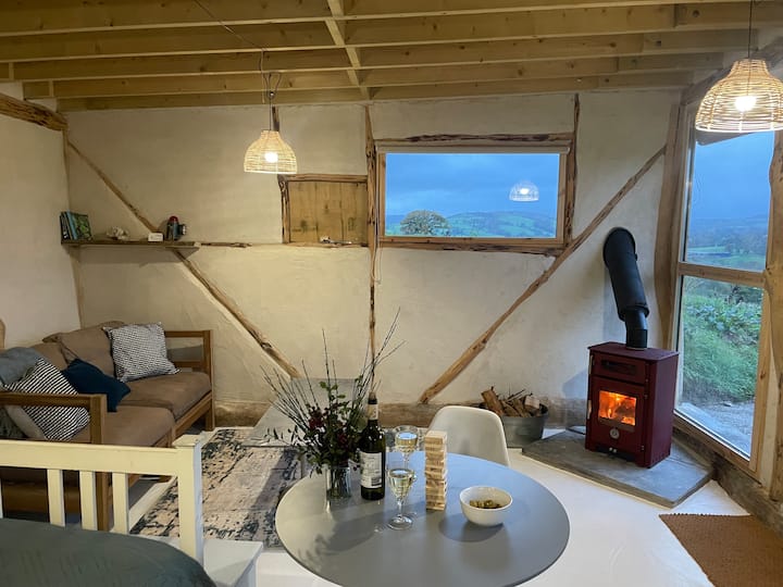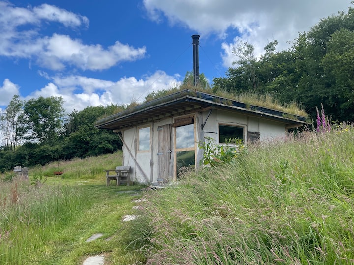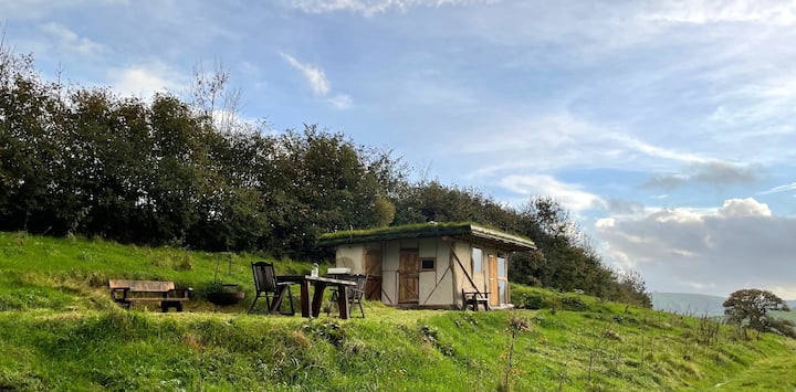 生态小屋,可欣赏草地、河流、树林和日落美景