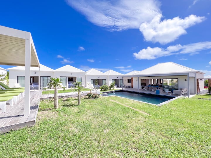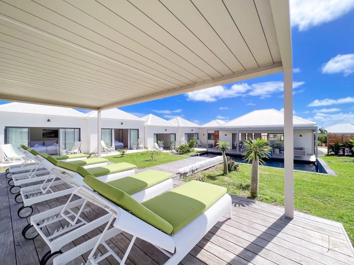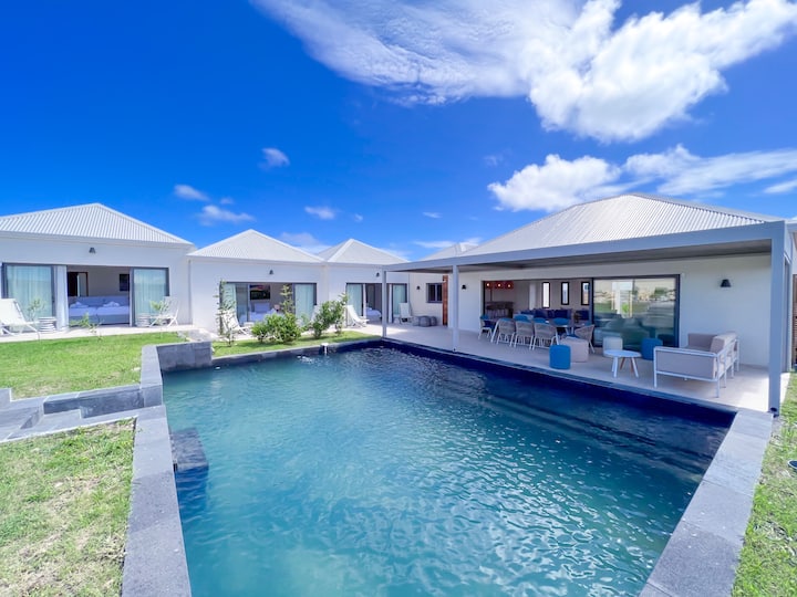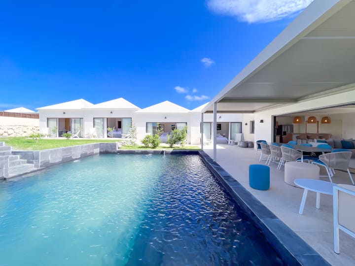 Kaïa Bleu别墅坐落在Saint · François著名的Belles Rives住宅中,体现了瓜德罗普岛的奢华季节性租赁。< br >这栋别墅最近建造了以圣·巴特的魅力为灵感的建筑,融合了优雅和现代。< br > < br >宽敞的80平方米客厅,包括一个休息室和一个设备齐全的开放式·布局厨房,邀请欢乐时光。< br >别墅的4间宽敞的卧室,每间都有自己的浴室,保证舒适的住宿体验。