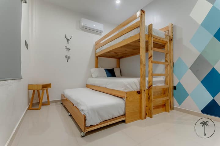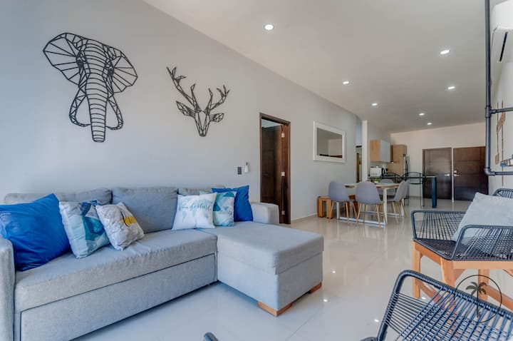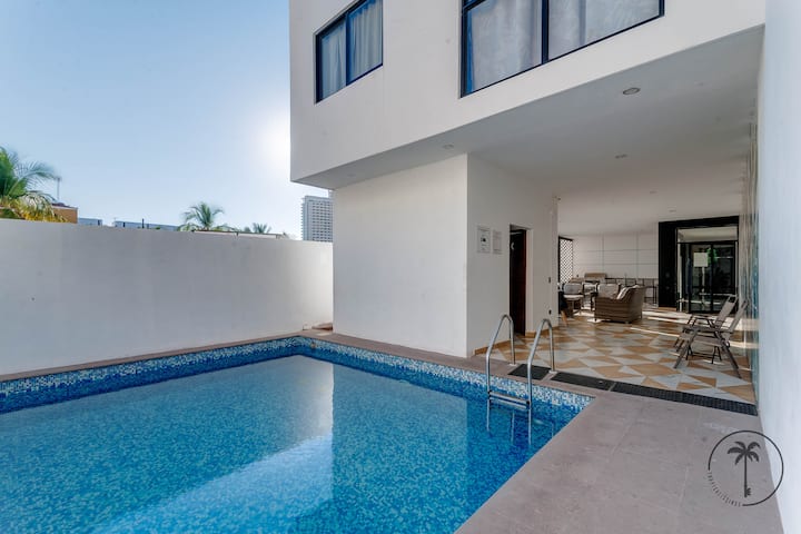 靠近海滩的带泳池的美丽公寓。