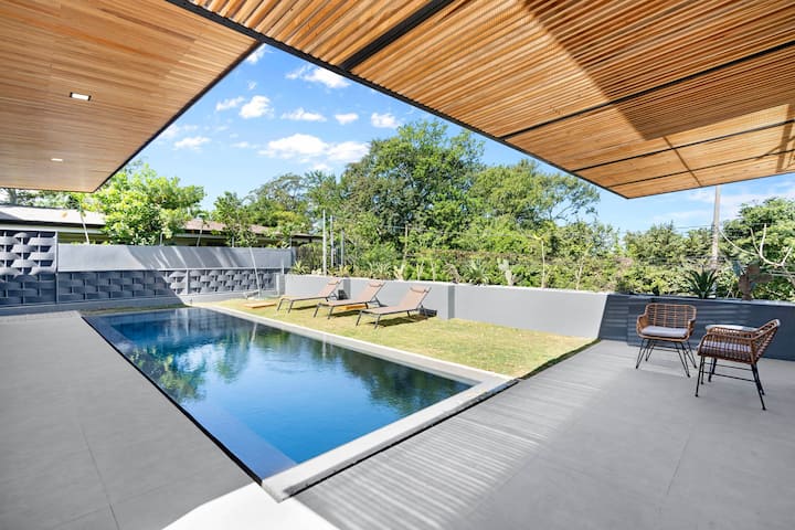 逃离喧嚣,来到Casa Shibui Norte这栋现代化的别墅,设有3间卧室和3间卫生间,步行9分钟(0.5英里)即可抵达塔马林多(Tamarindo)市中心及其美丽的冲浪海滩。 这片私人绿洲完美融合了舒适、时尚和便利,非常适合家庭、情侣和团体入住。