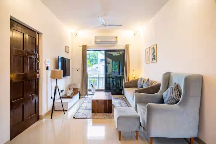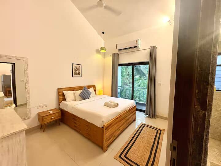 每间客房均配备空调和套内阳台,您可以在闲暇时享受新鲜的Goan微风。 一间卧室设有套房浴室,而第二间卫生间就在外面,非常方便。
