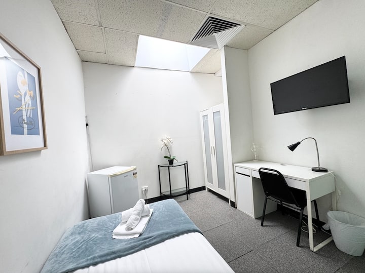 位于市中心的单人房!配备电视和冰箱!