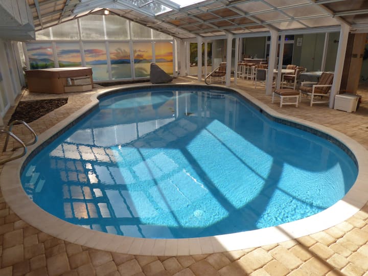 这栋2902平方英尺的房子最近被收购,并配备了一个工作老式泳池加热器。 我们测试了加热怪物。 我们运行了2周,效果不太贵。 如果您想选择加热器:在多次计算后,全额预订的每一天的费用/费用为85.00美元。 我们在佛罗里达州,请注意,距离加热泳池仅1分钟车程,您也可以步行前往那里保持身材!