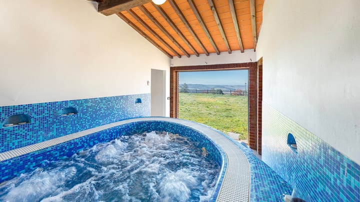 这座别墅是历史悠久的15世纪小村庄的一部分,保留了其原始布局,主楼层位于上层,可欣赏克里特岛塞内西、蒙特阿米亚塔和蒙特切托纳的全景。 该房源包括主屋、独立客房、健身附属建筑和围栏泳池。 室内装潢将传统的石头建筑与现代舒适设施相结合,设有宽敞的用餐和起居区,所有卧室均配有空调,还有健身房和水力按摩浴缸。 室外设有烧烤、木柴烤箱和遮阳餐桌,可供户外用餐。 别墅距离蒙特圣萨维诺(Monte San Savino)、锡耶纳(Siena)、拉波拉诺泰尔梅(Rapolano Terme)和瓦尔德奥尔西亚(Val d 'Orcia)很近,是探索托斯卡纳南部美景和美食的理想之地。
