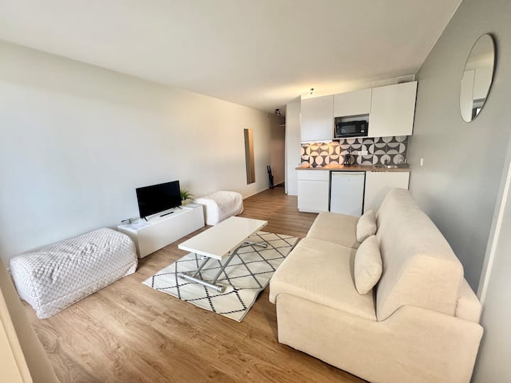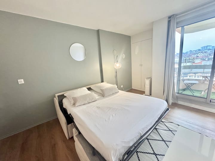 带阳台的单间公寓 - 泳池 - 步行可达海滩