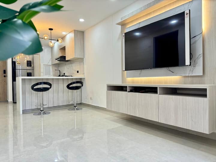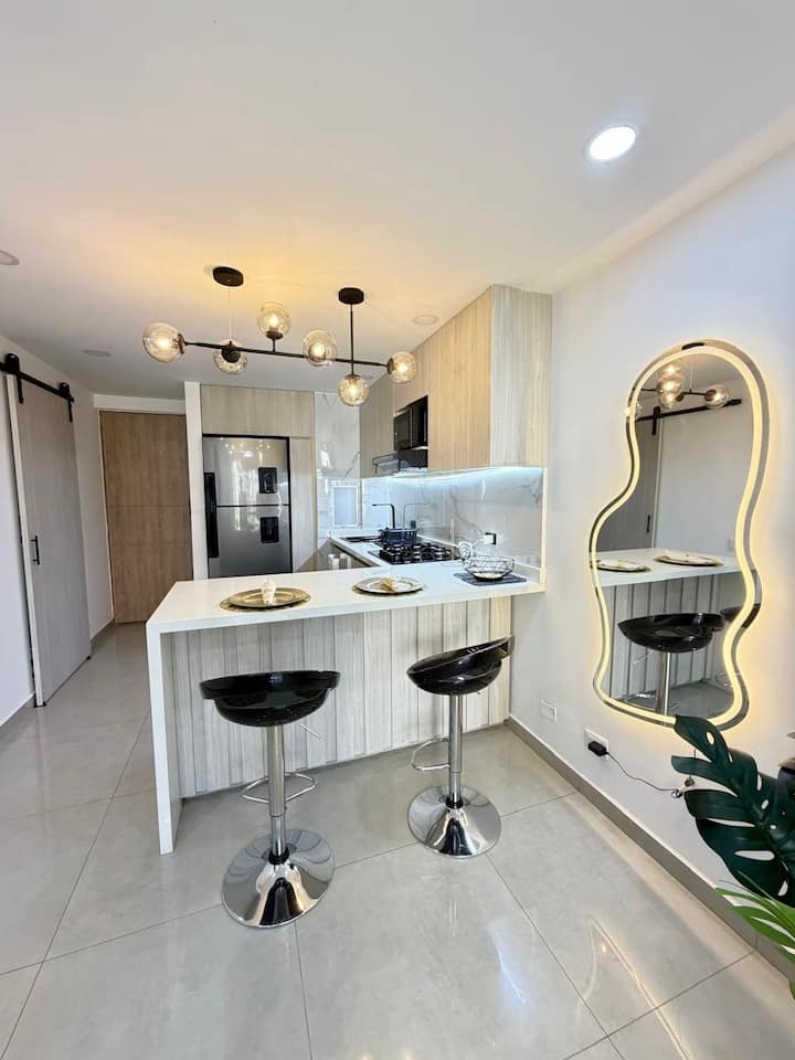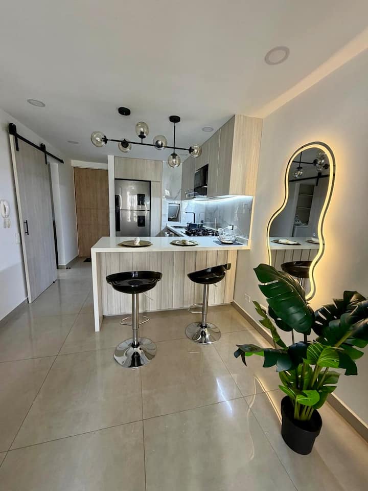 享受位于卡利南部的65平方米精致公寓,配有两间卧室、现代化客厅、设备齐全的厨房、空调、泳池和健身房。 包括停车位和全天候安保。 靠近购物中心、大学、餐厅,可直接通往MIO大众交通。 非常适合寻找时尚、舒适和独特位置的旅行者、情侣、家庭和高管入住。