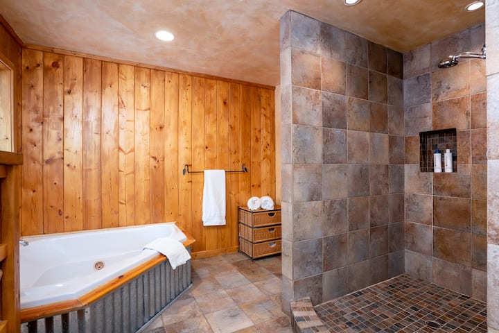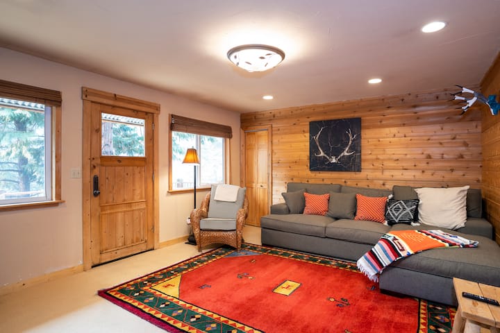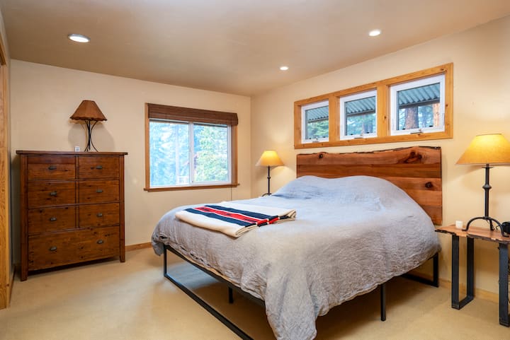 房客对宁静的地理位置赞不绝口,可直接通往小径,同时靠近太浩湖和滑雪胜地。 家庭和团体喜欢宽敞、开放的布局,拱形天花板和舒适的卧室,方便聚在一起或分开。 私人热水浴缸是您在一天的探险后放松身心的最佳场所,而经过改造的带加热地板的浴室和储备充足的厨房则增添了一丝奢华。