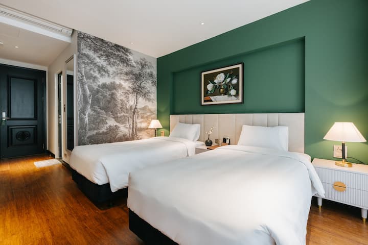 越南河内还剑的酒店内的房间