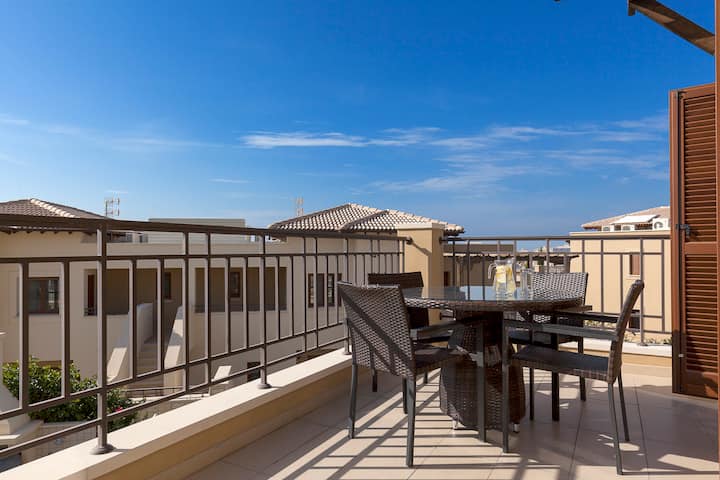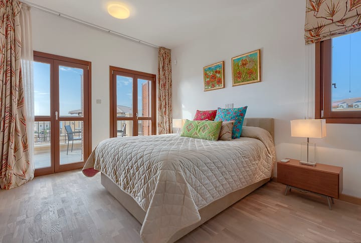宽敞、现代、舒适的双卧室高级酒店式公寓,配备优质家具,注重细节,现代色彩,设计师照明和高品质配件。 这套高标准公寓位于新建的亚历山大高地( Alexander Heights )的绝佳位置。 这处面朝南方的壮丽景点可欣赏美丽的海景,距离度假村中心仅几步之遥,那里有无数的设施。