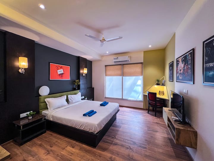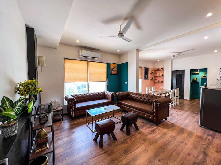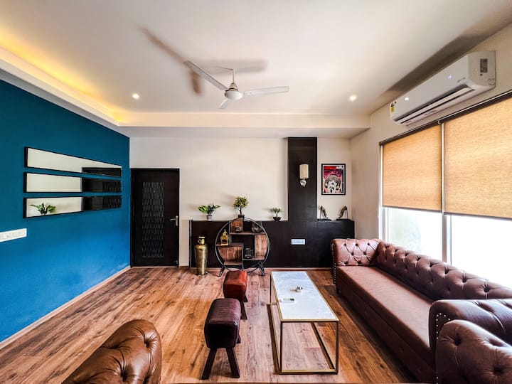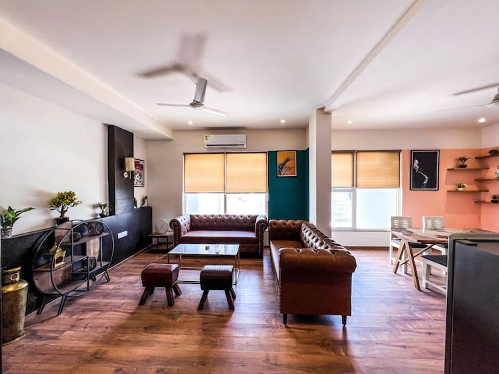 在我们设计精美、宽敞的二楼双卧室公寓中放松身心,位于充满活力的Malviya Nagar中心地带。 这个建筑师设计的空间将现代优雅与古怪的复古风格融为一体,完美融合了时尚和舒适感。 配备设备齐全的厨房、高速无线网络、40英寸LED电视,以及吹风机和无蚊环境等现代舒适设施。
