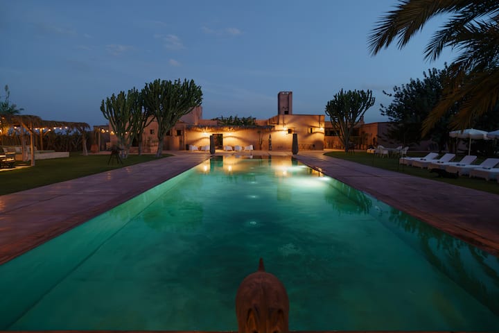 La Parenthèse的绿洲距离繁华的马拉喀什市30分钟车程,位于AGAFAY沙漠的边缘,绿洲拥有早期沙漠的壮丽全景,可欣赏高阿特拉斯山脉的壮丽景色、20x6米的泻湖泳池、郁郁葱葱的花园(占地1.5公顷)及其套房,将为您带来令人惊叹和甜蜜的宁静……