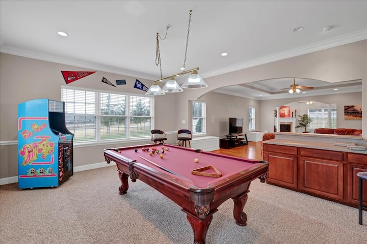在路易斯维尔乡村庄园(Louisville Country Manor)尽情放松享受,在这片5英亩宁静乡村中,奢华与便利相得益彰,距离路易斯维尔市中心仅20分钟车程! 这栋宽敞的房源不是一个,而是两个主要的起居区,确保所有房客都有充足的空间和隐私。