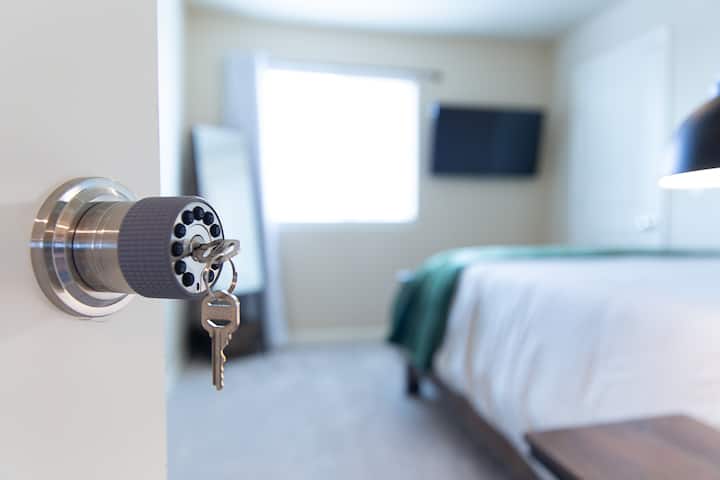 当您走进房间时,您会看到一个新粉刷的空间,自然光线充足。 客房配有豪华的12英寸记忆泡沫床垫、新床上用品和43英寸电视,可满足您的娱乐需求。 进入公共区域,您会发现宽敞的起居室,配备65英寸电视和大型组合沙发,以及健身房、洗衣机/烘干机。 房租包括所有家具、水电和Wi-Fi。