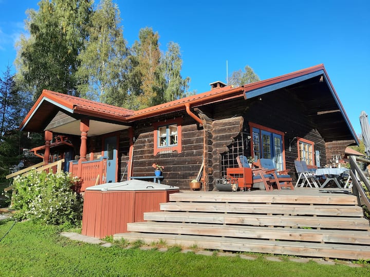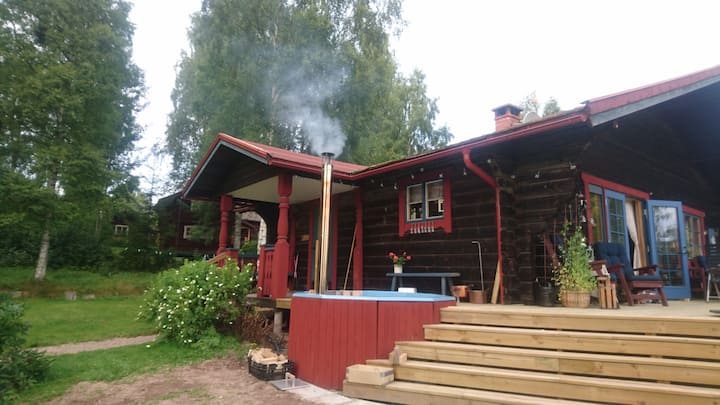 宽敞舒适的原木小屋,配备热水浴缸,Siljansnäs