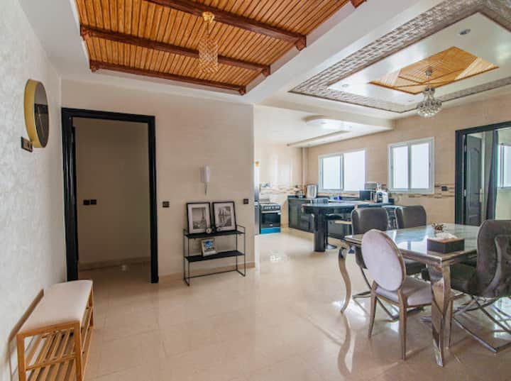 位于阿加迪尔的「Hay Mohammedi」街区的中心,这是一个罕见的地方等着您。 我们美丽的公寓靠近所有需要的小商店,距离海滩仅10分钟车程,适合家庭和情侣入住,旨在提供独特而精致的茧。 来到这个充满活力和分享的地方,享受海浪和鸡尾酒