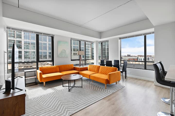 宽敞现代的2卧2卫公寓,临近广场