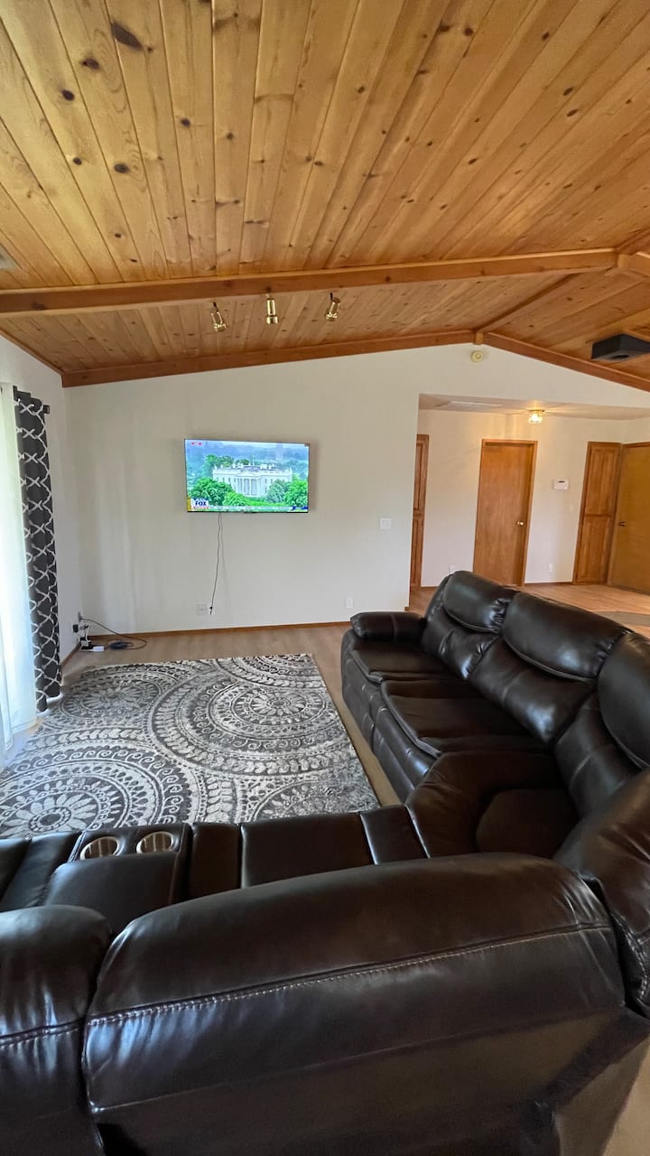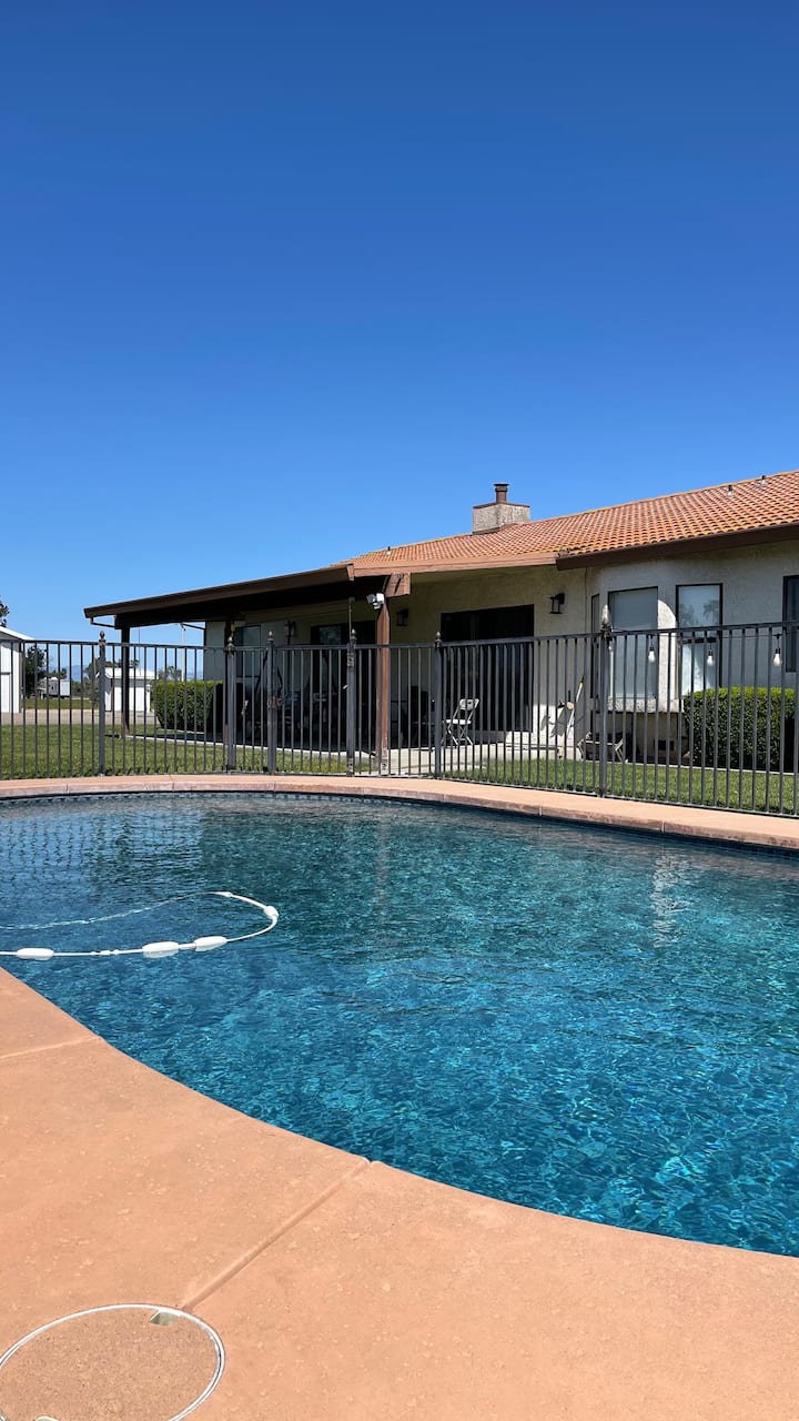 宽敞的小木屋风格房源,带泳池