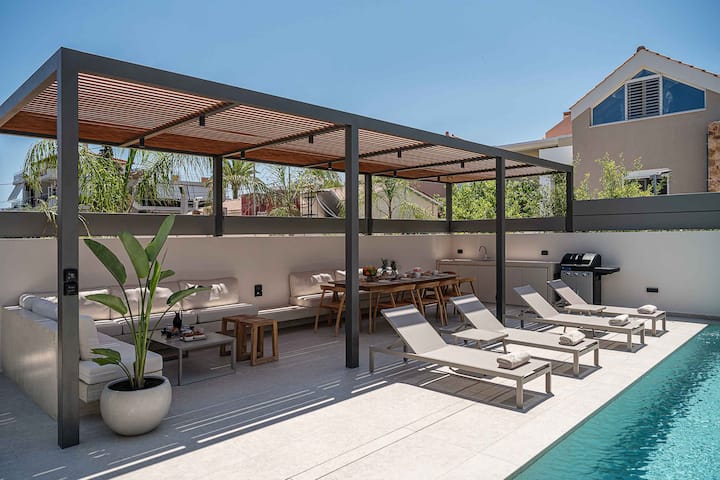 桑西豪华别墅I 距离海滩400米,配备加热*泳池和健身房