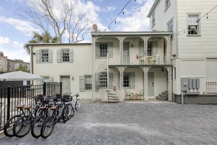 房间的前门通往我们的户外露台,露台设有舒适的休息区,您可以在这里享用晨间咖啡、品尝葡萄酒或在泳池中畅游,同时欣赏查尔斯顿市中心历史景观的壮丽魅力。马车房舒适安静。这是在城市中游玩,同时享受幽静和宁静的绝佳方式。
