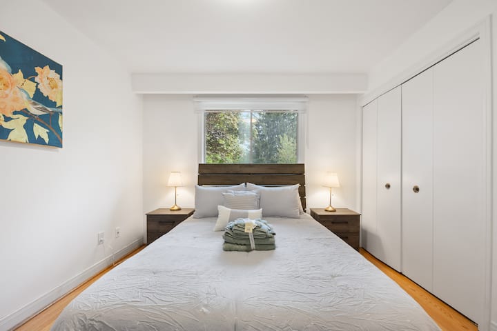 上层房源,4张床,2个卫生间,2个免费停车位