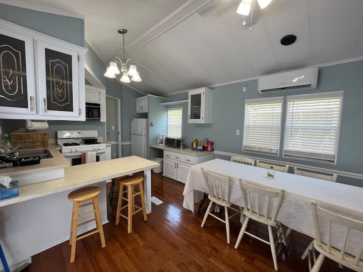 在舍克斯顿度假村与全家人一起享受乐趣! 我们的2卧室小屋最多可入住8人,包括高尔夫球车租赁。 配备现代化的便利设施,如内置音频系统、电视和少数几个带有两个卫生间的小屋之一,可帮助您应对早晨的匆忙! 位于平静的埃伯利森林( Eberly Woods )中心!