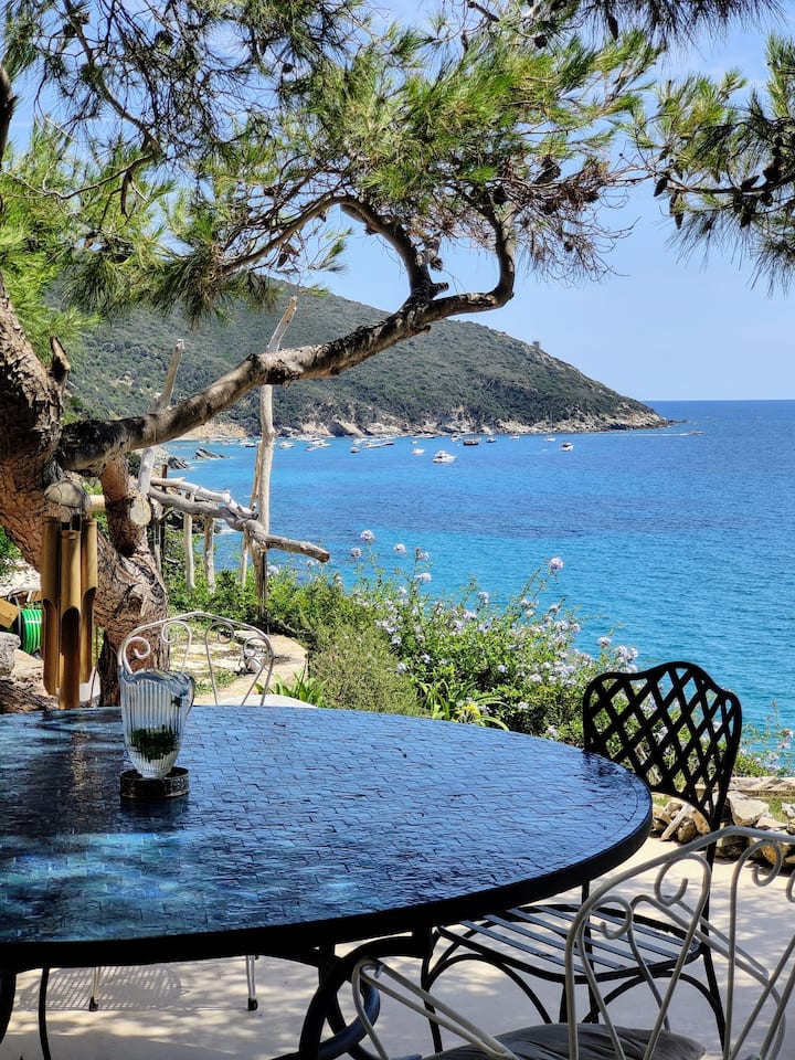 令人惊叹的阳光明媚的花园可俯瞰撒拉逊塔( Saracen Tower )、吉安努特里岛( Giannutri Island )和阿根廷里奥海岸( Argentario Coast ) ,营造出「令人惊叹」的效果。 您可以在各种休息区或树下的吊床上放松身心。 距离花园只有很短的楼梯,可直接通往大海。 这个梦幻般的户外空间包括一张大型内置沙发,凉亭下方有白色坐垫,被松树遮蔽,还有一个用餐区,配有一张大型圆形摩洛哥桌子,装饰有海蓝色瓷砖,可容纳10-12位房客。 全景日光浴室是最美丽的景点,提供两张日光浴躺椅和一个户外淋浴间,供您享用茶点。 客厅前面还有其他小休息区,配有柳条椅。