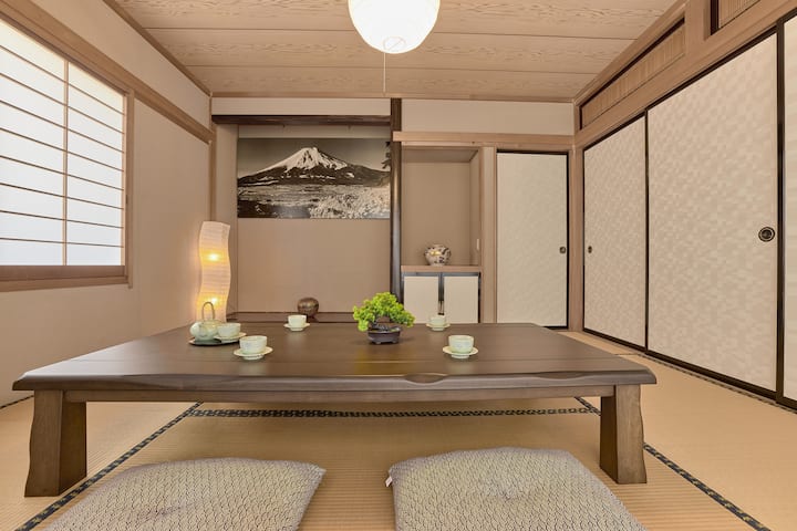距离富士山站仅3分钟步行路程,是一栋可以欣赏富士山绝美景色的宽敞独栋房屋!可接待大型团体!