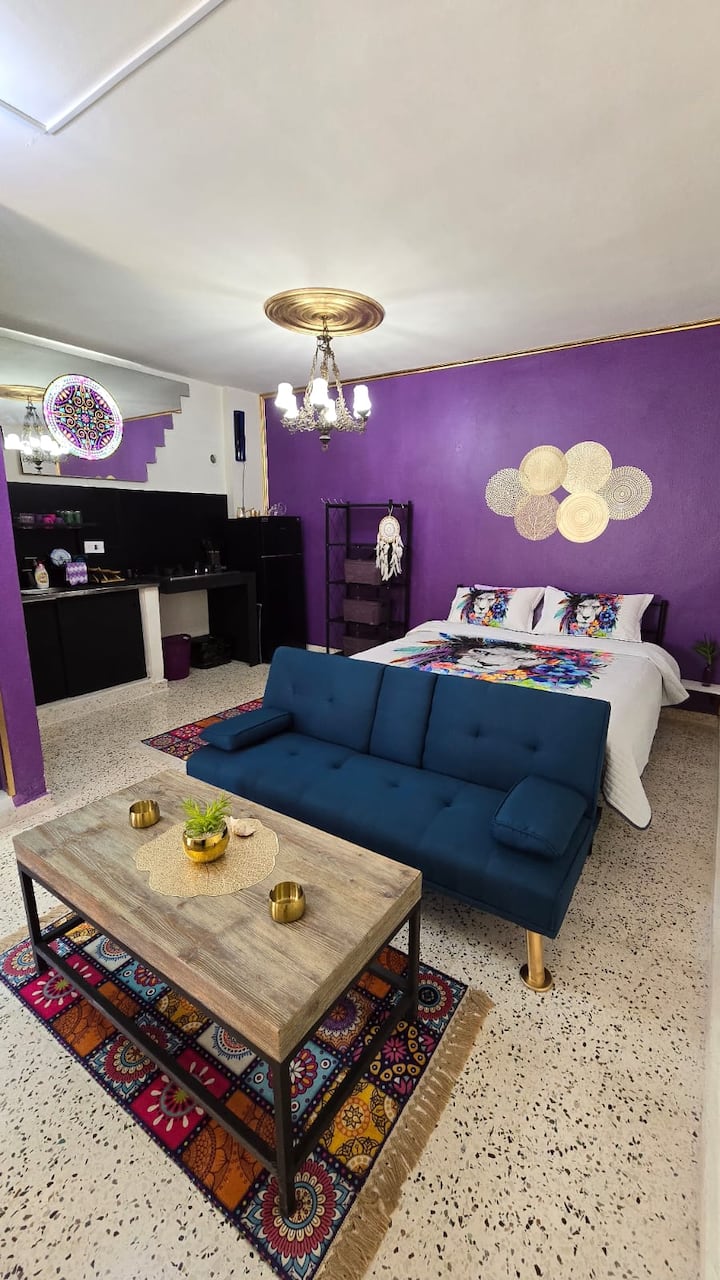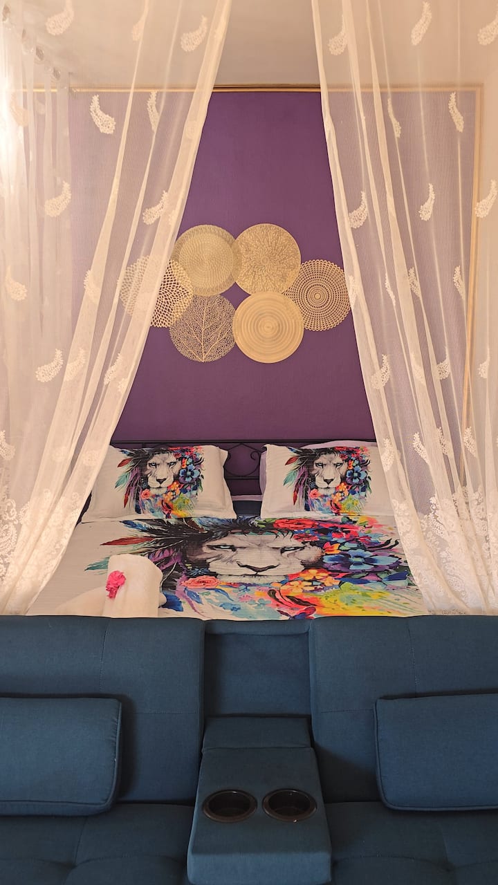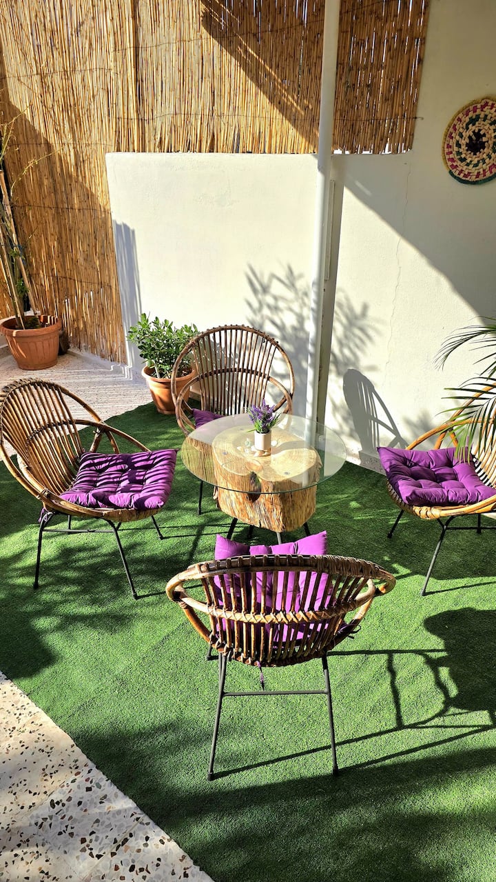 靠近巴特伦和朱拜勒的波西米亚风紫色单间公寓海滩住宿