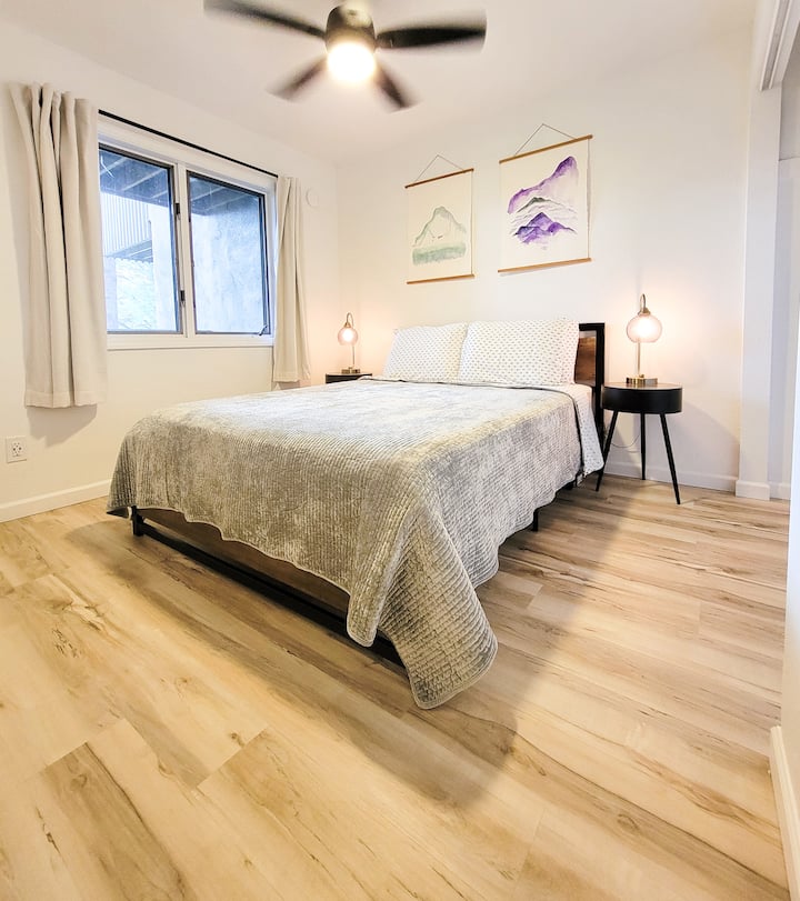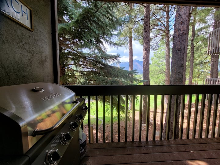 山脊上的山景,翻新后的公寓。烤架。
