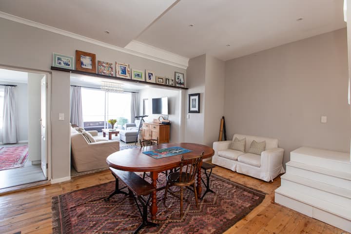 6. * *起居空间: * *多功能区域,设有用餐区、配备卫星电视、Netflix和Showmax的客厅。 这里还有一个舒适的休息区,可欣赏桌山的美景。 阳台上还有一个额外的布莱景点,可俯瞰桌山和海滩,非常适合沉浸在充满活力的度假氛围中。