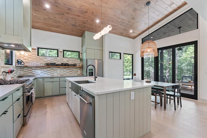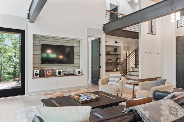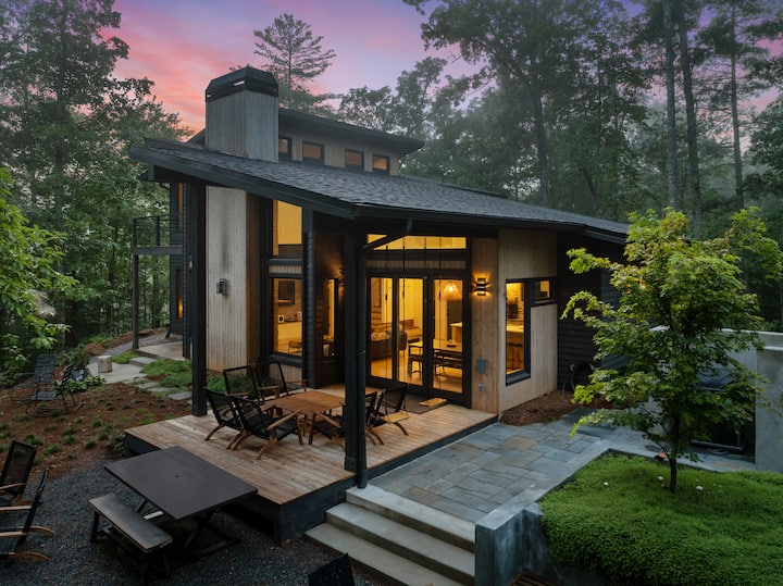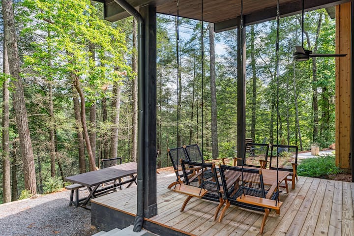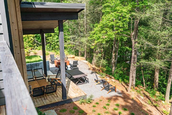 Ellijay Falls | 热水浴缸、壁炉和森林景观