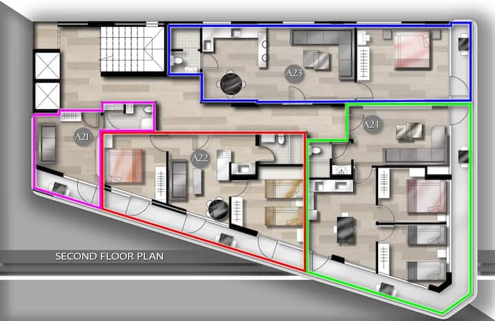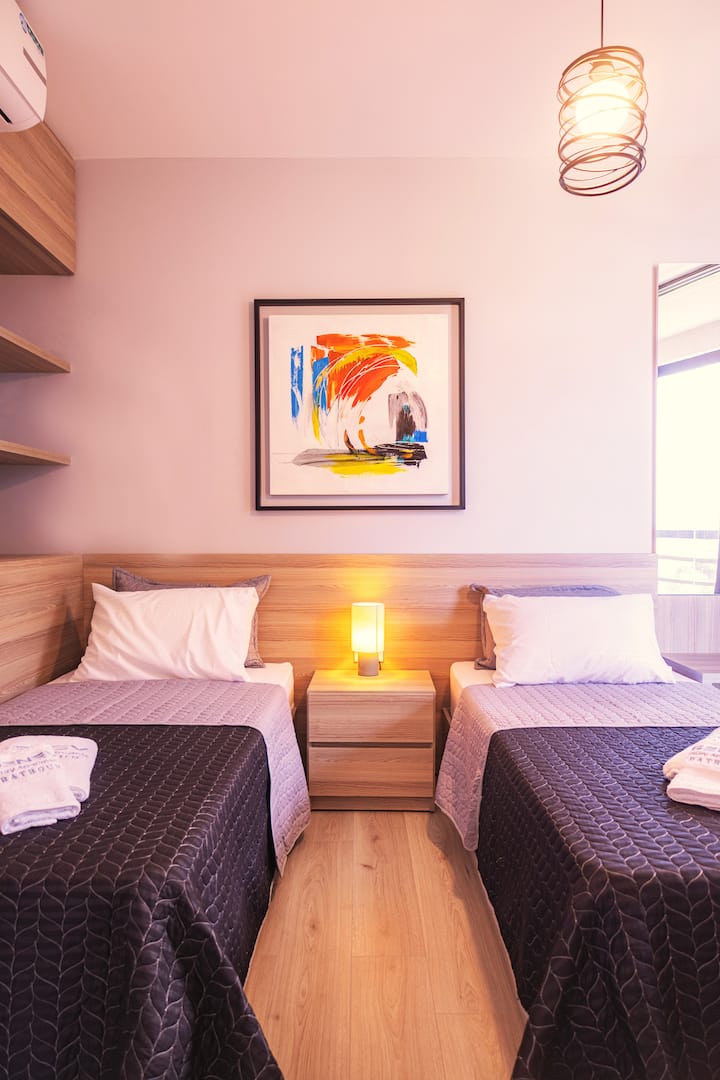 欢迎来到这间现代时尚的两卧室公寓,非常适合舒适方便的住宿。 公寓设有宽敞的双人卧室、一间双床卧室和一间时尚的卫生间。 开放式客厅、餐厅和厨房区域是放松和社交的理想场所。 从卧室和客厅可进入宽敞的阳台,提供了放松身心的绝佳空间。 您还可以使用基本便利设施,确保家人或朋友拥有无缝、愉快的住宿体验。