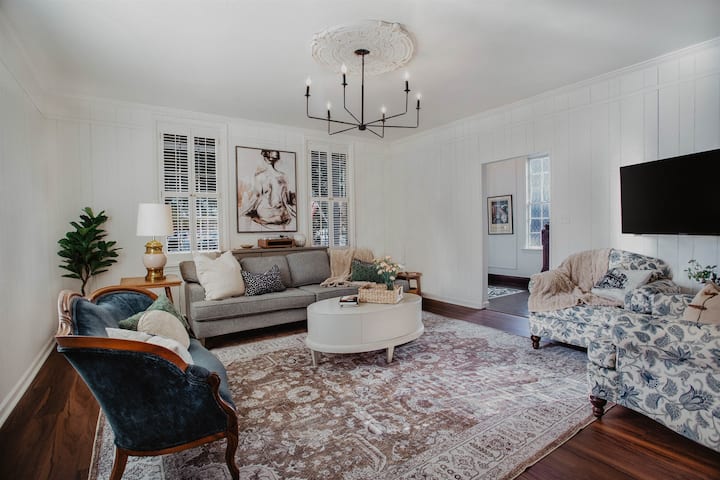 踏入这座位于佐治亚州哥伦布市中心/市区的华丽房源,惊叹于其历史悠久但又经过更新的美丽、更新的装饰和众多便利设施。从客厅到聚会厨房,这座历史悠久的出租房源散发着奢华气息。